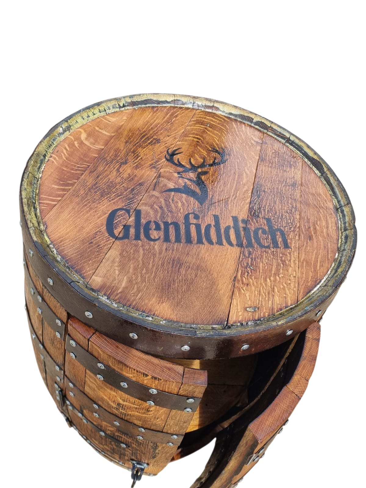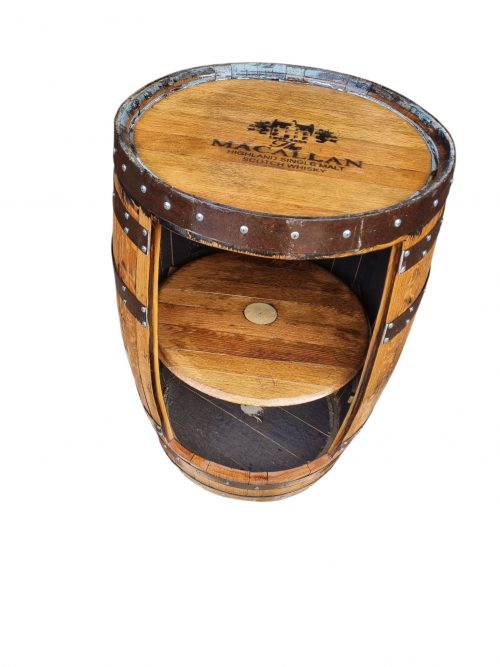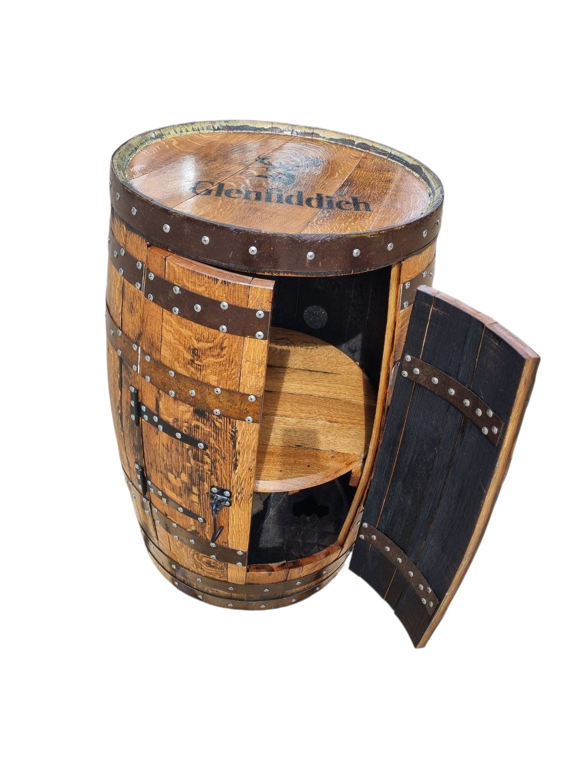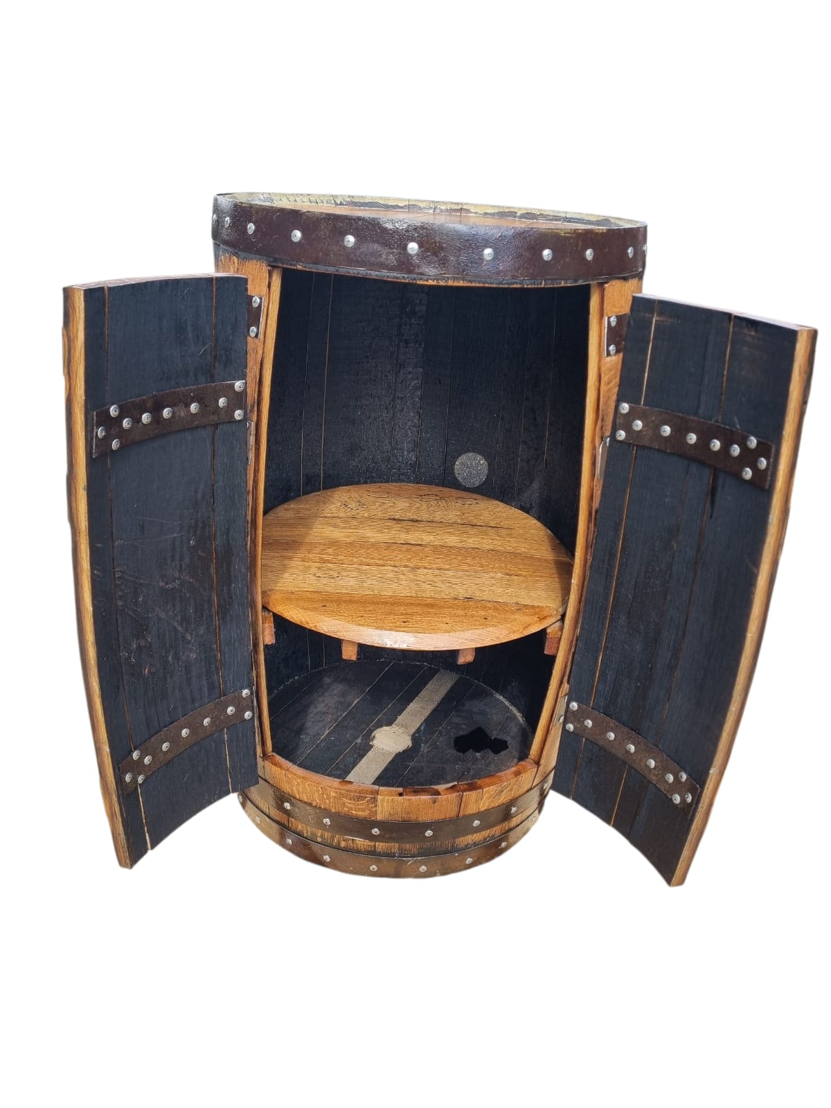 The recycled solid oak whisky barrel drinks cabinet is handmade from recycled Scottish whisky casks that have been sourced from the finest and oldest distilleries in Scotland. They have been completely refurbished and sanded back to give an aged oak look.