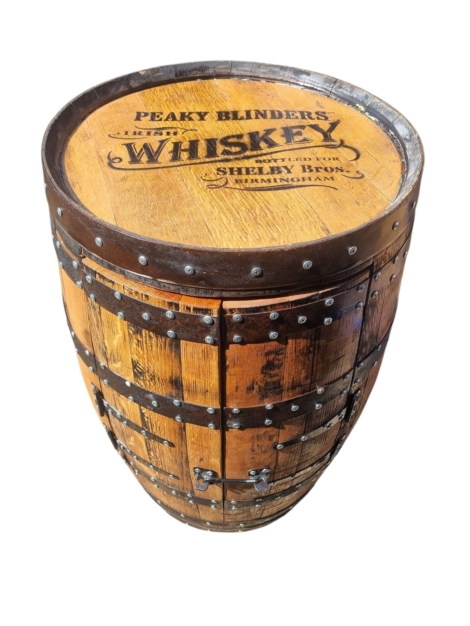 The recycled solid oak whisky barrel drinks cabinet is handmade from recycled Scottish whisky casks that have been sourced from the finest and oldest distilleries in Scotland. They have been completely refurbished and sanded back to give an aged oak look.