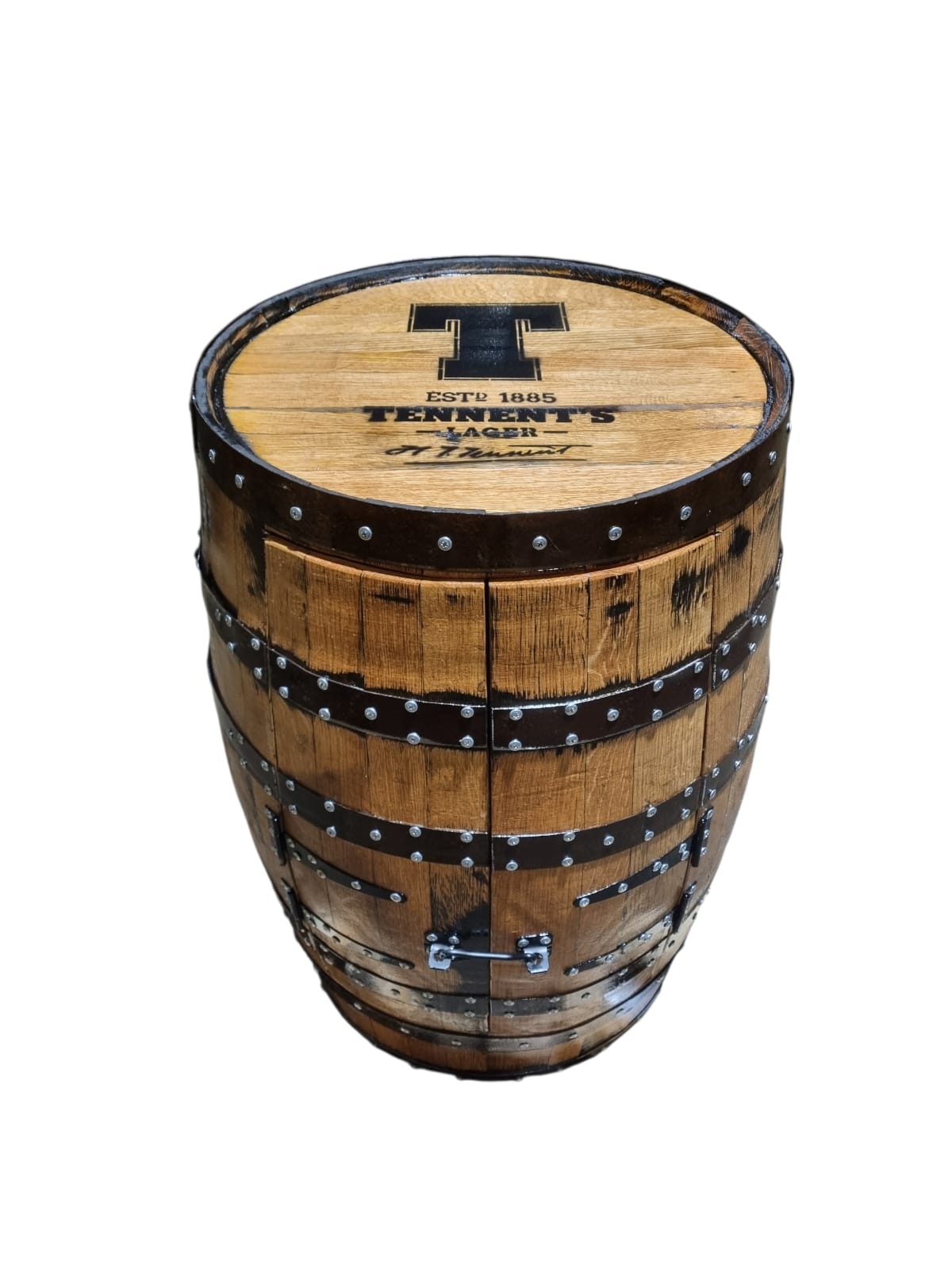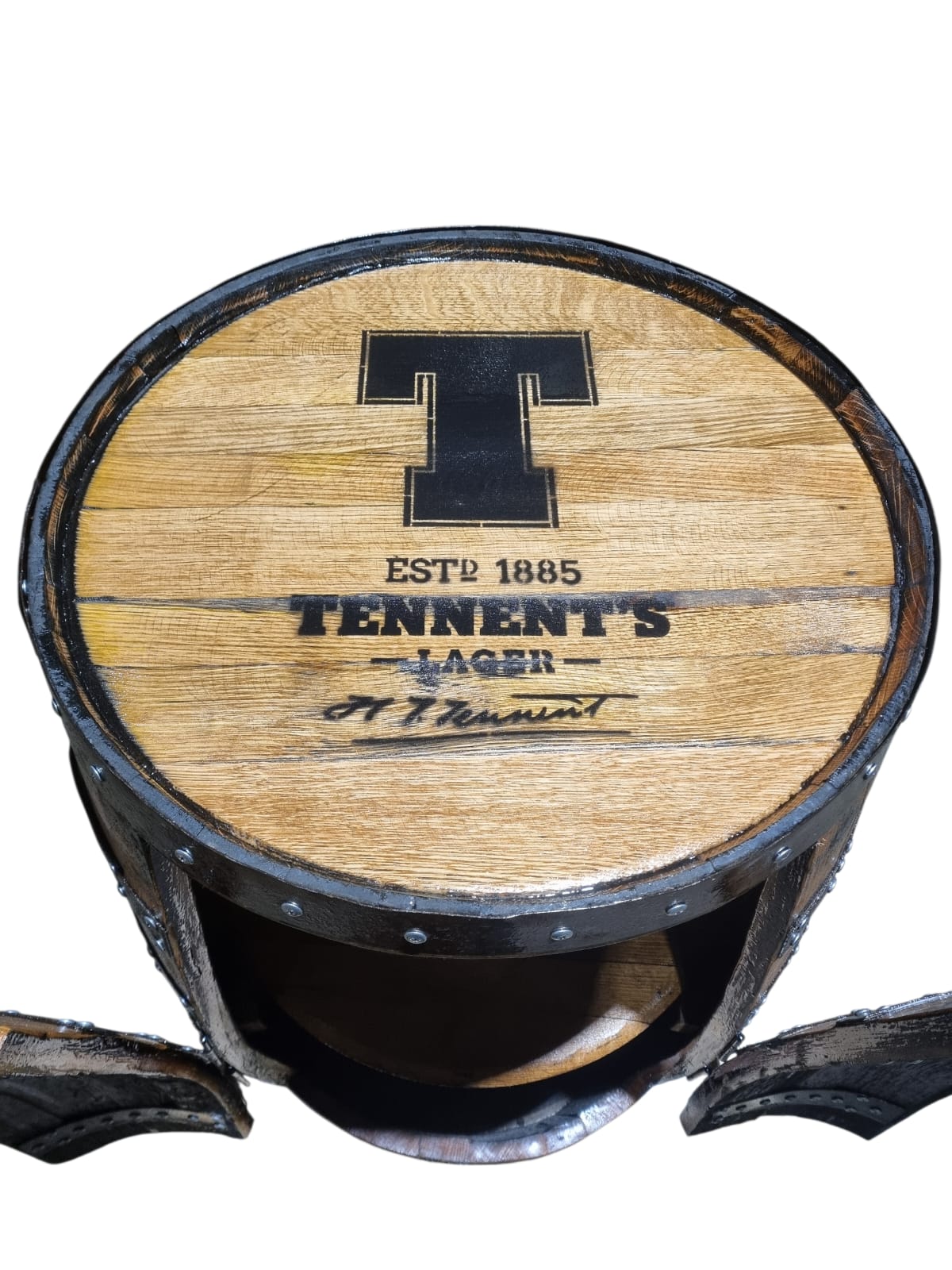 - Top of the barrel has Tennents printed on it