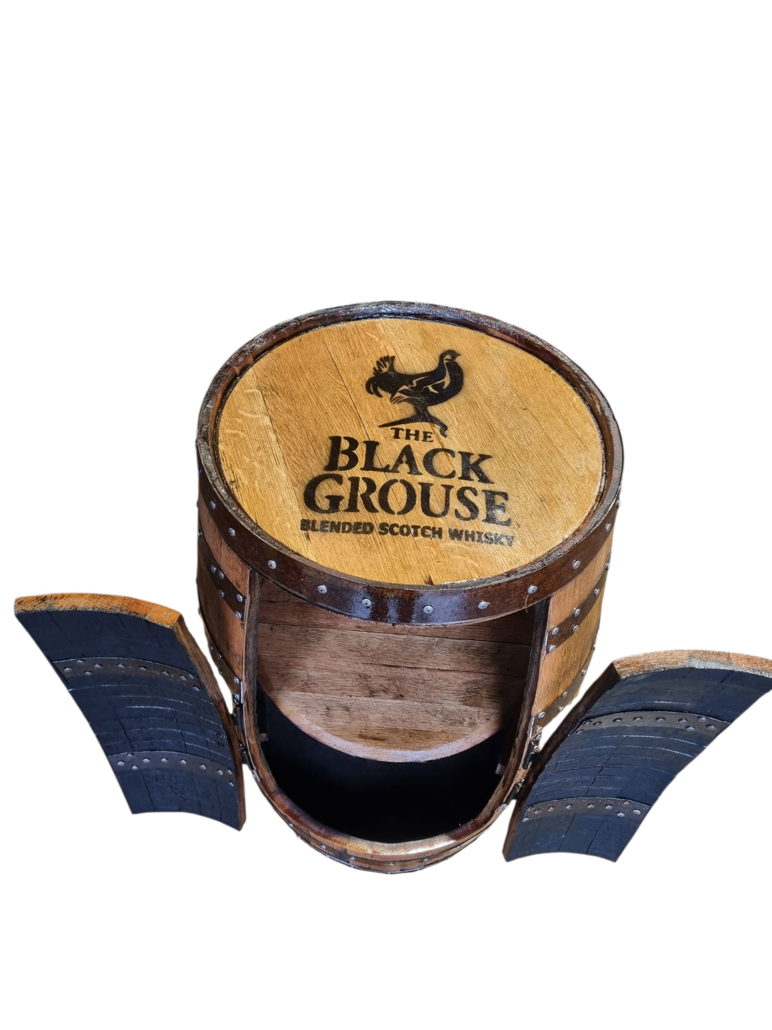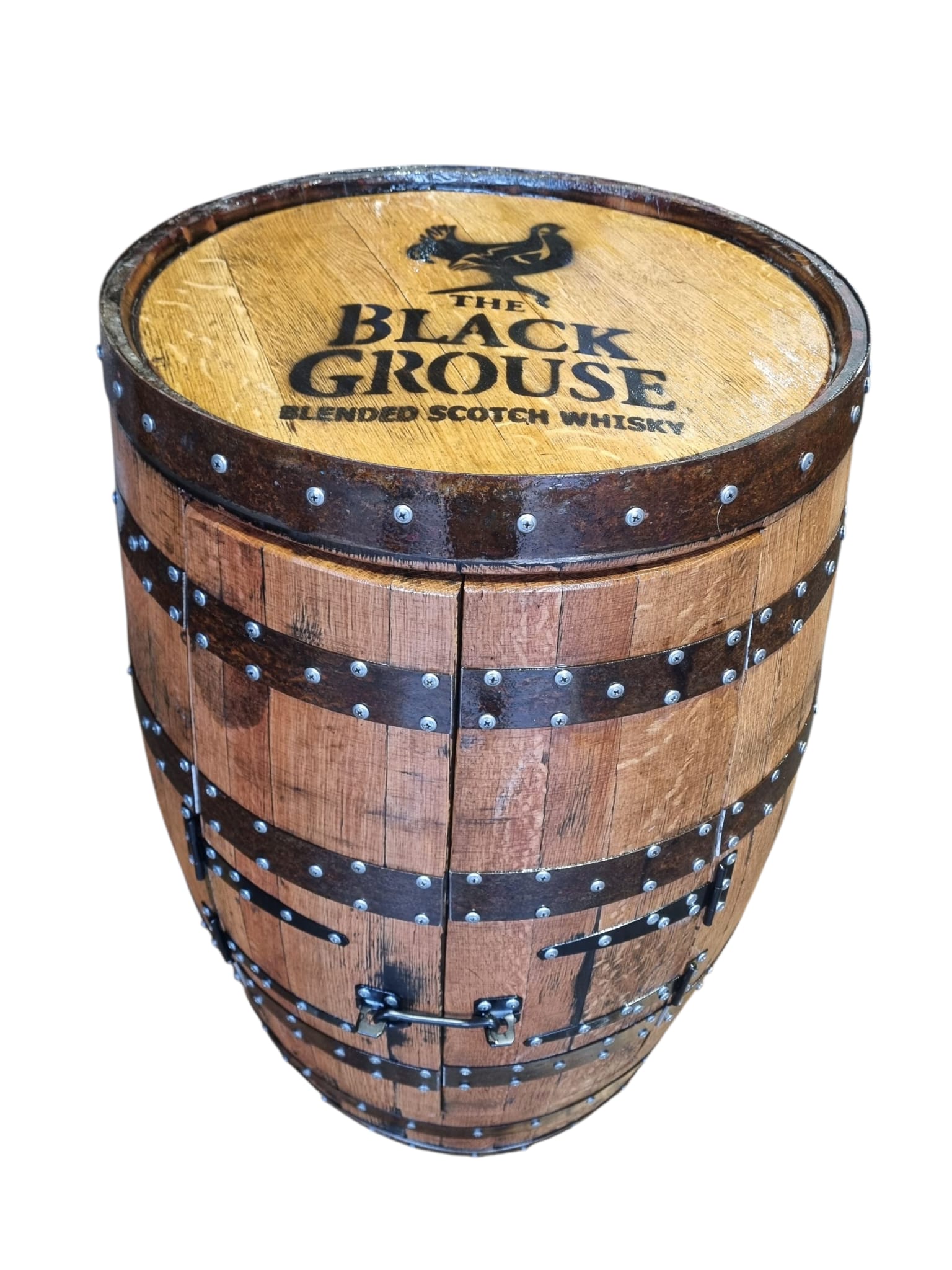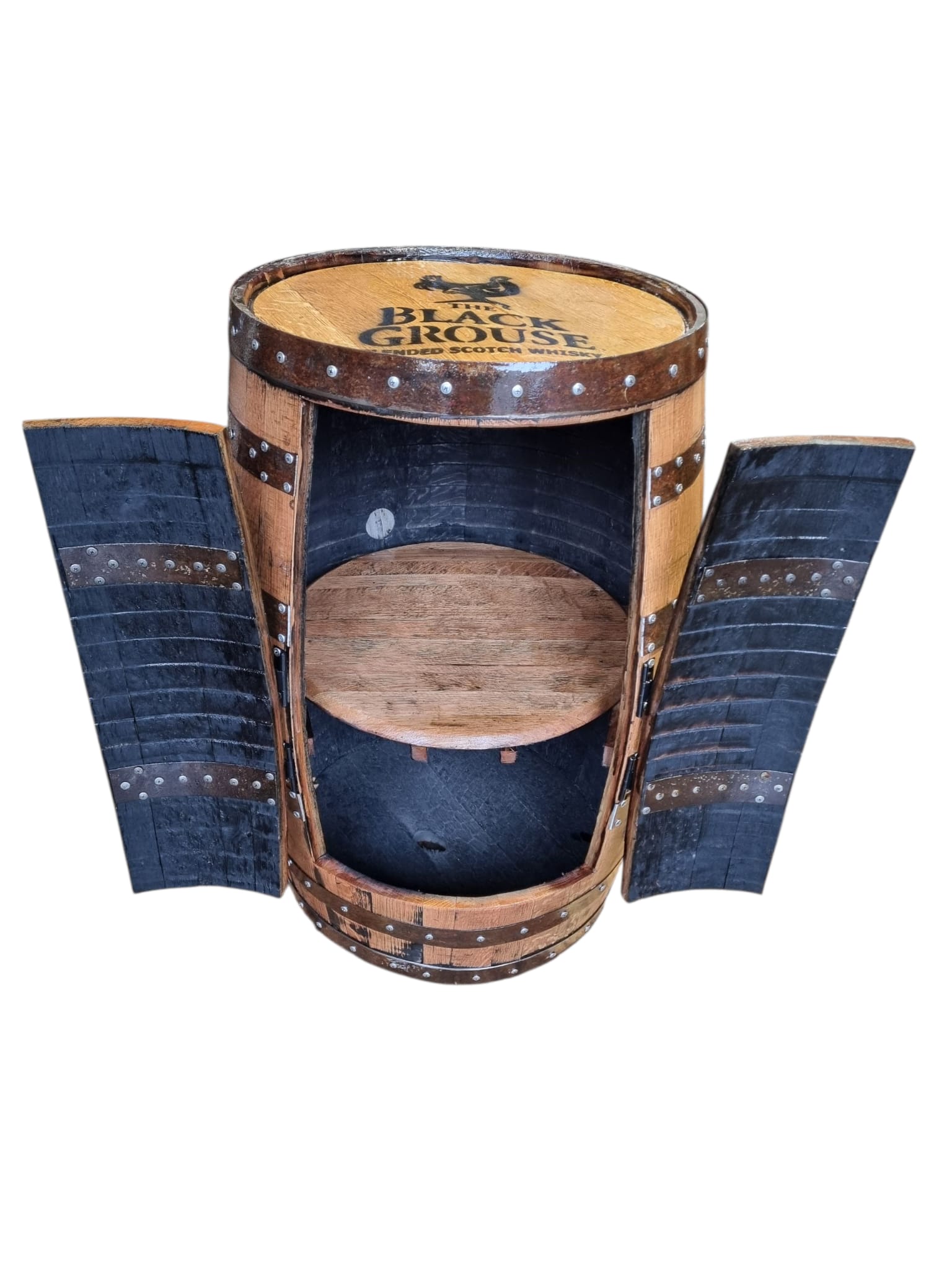 The recycled solid oak whisky barrel drinks cabinet is handmade from recycled Scottish whisky casks that have been sourced from the finest and oldest distilleries in Scotland. They have been completely refurbished and sanded back to give an aged oak look.