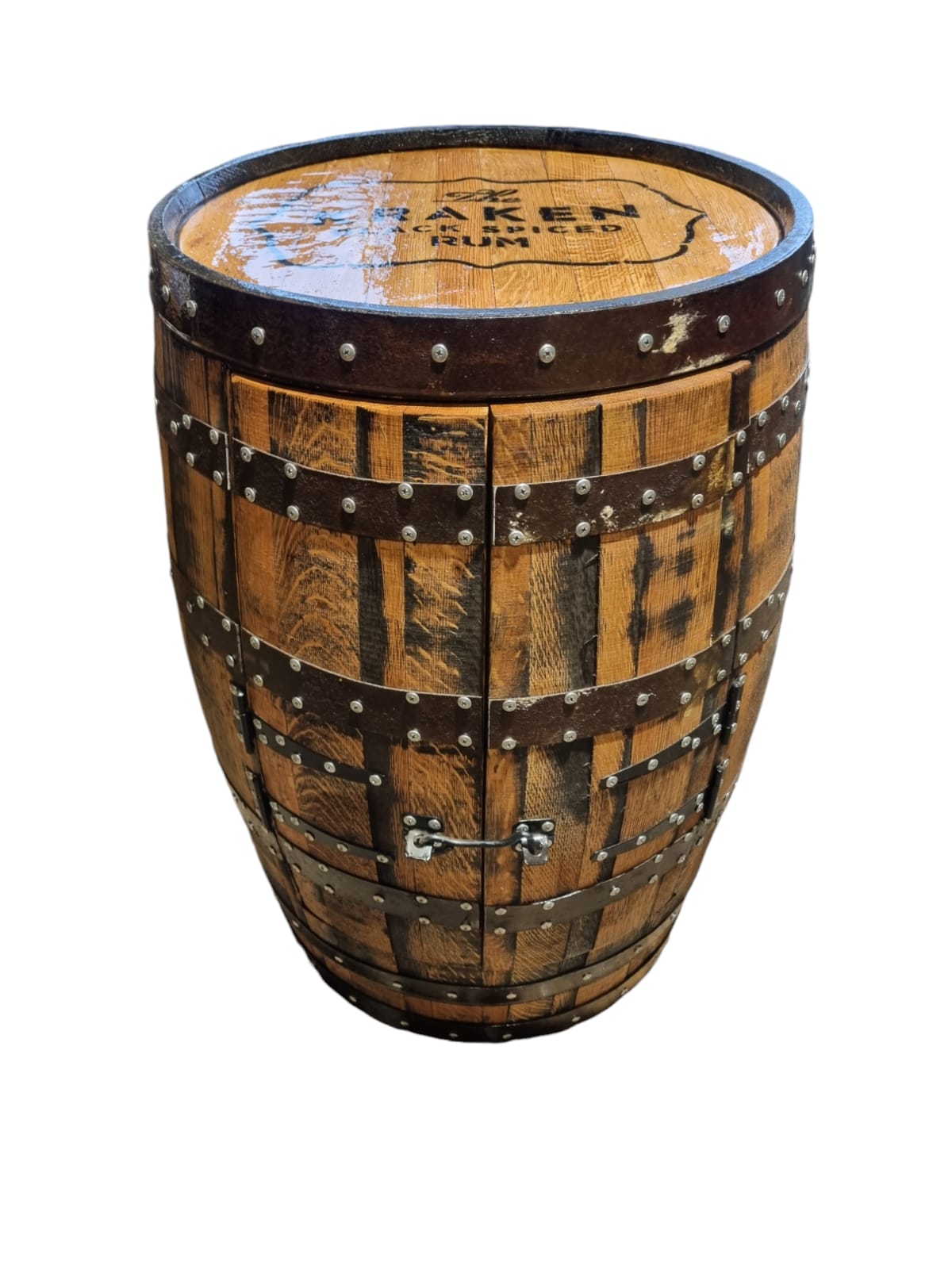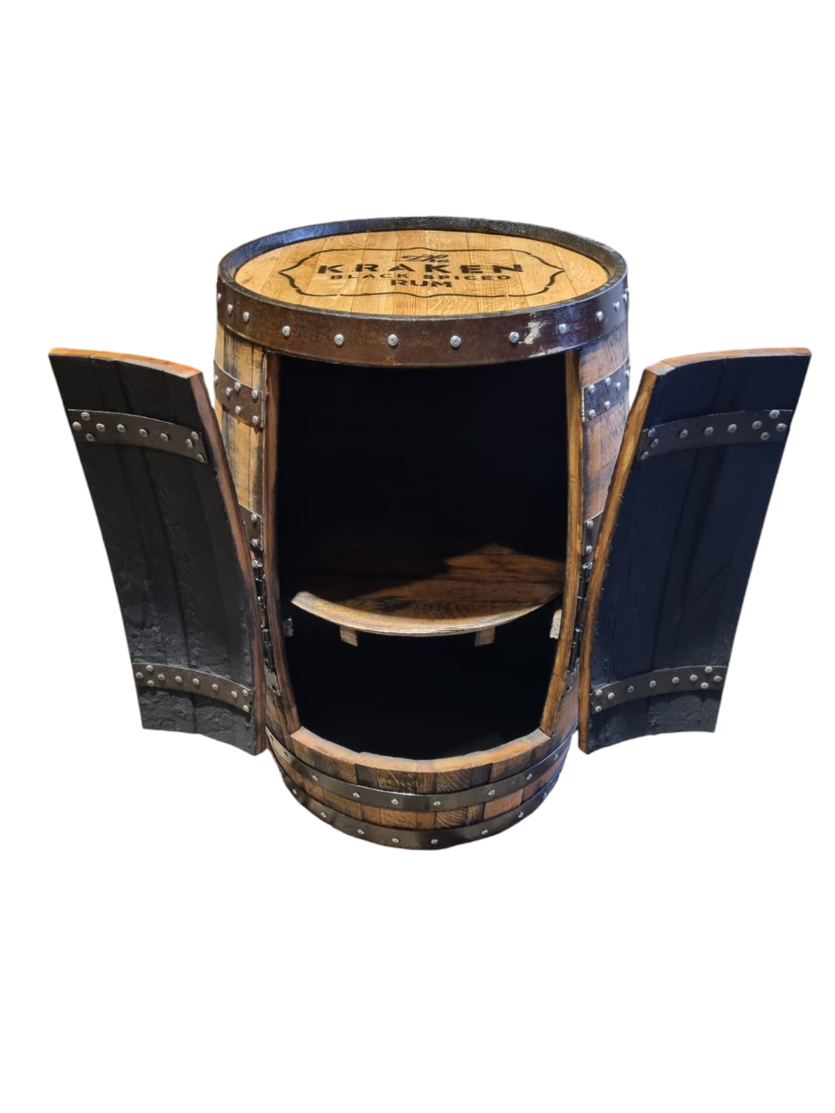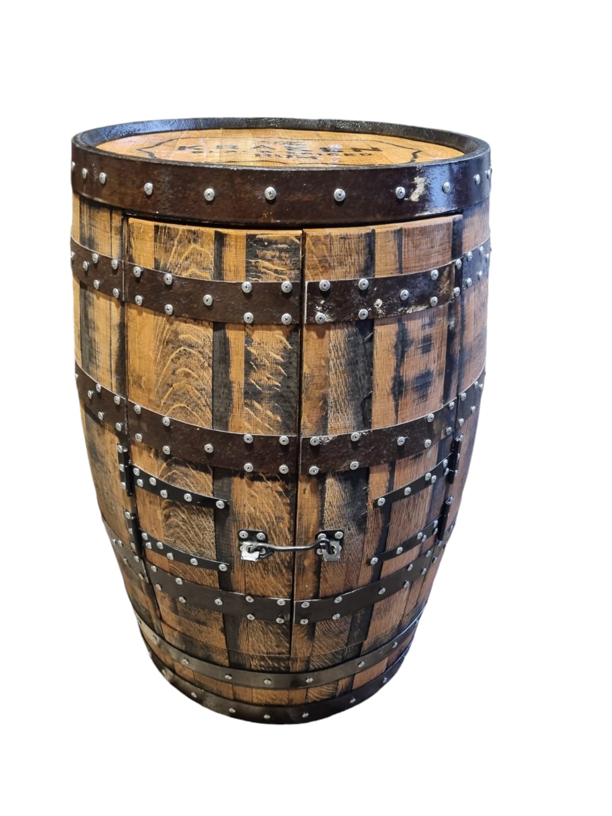 The recycled solid oak whisky barrel drinks cabinet is handmade from recycled Scottish whisky casks that have been sourced from the finest and oldest distilleries in Scotland. They have been completely refurbished and sanded back to give an aged oak look.