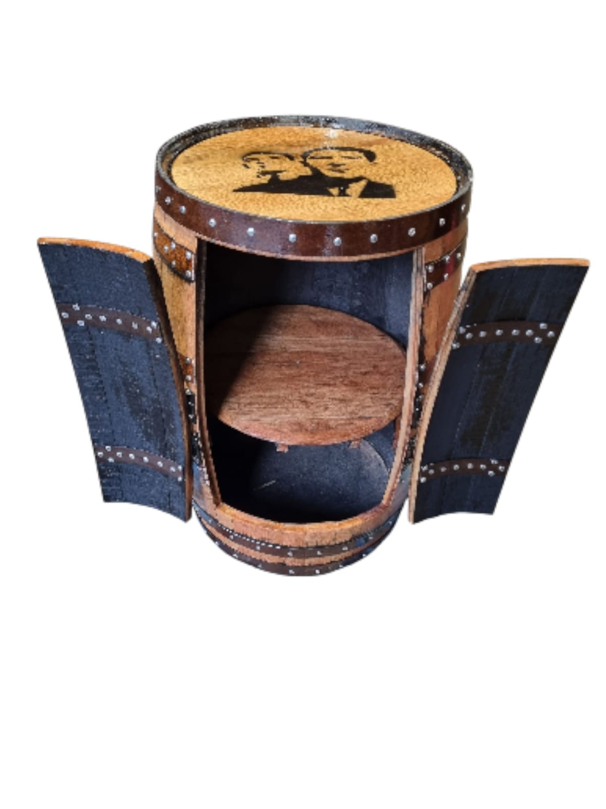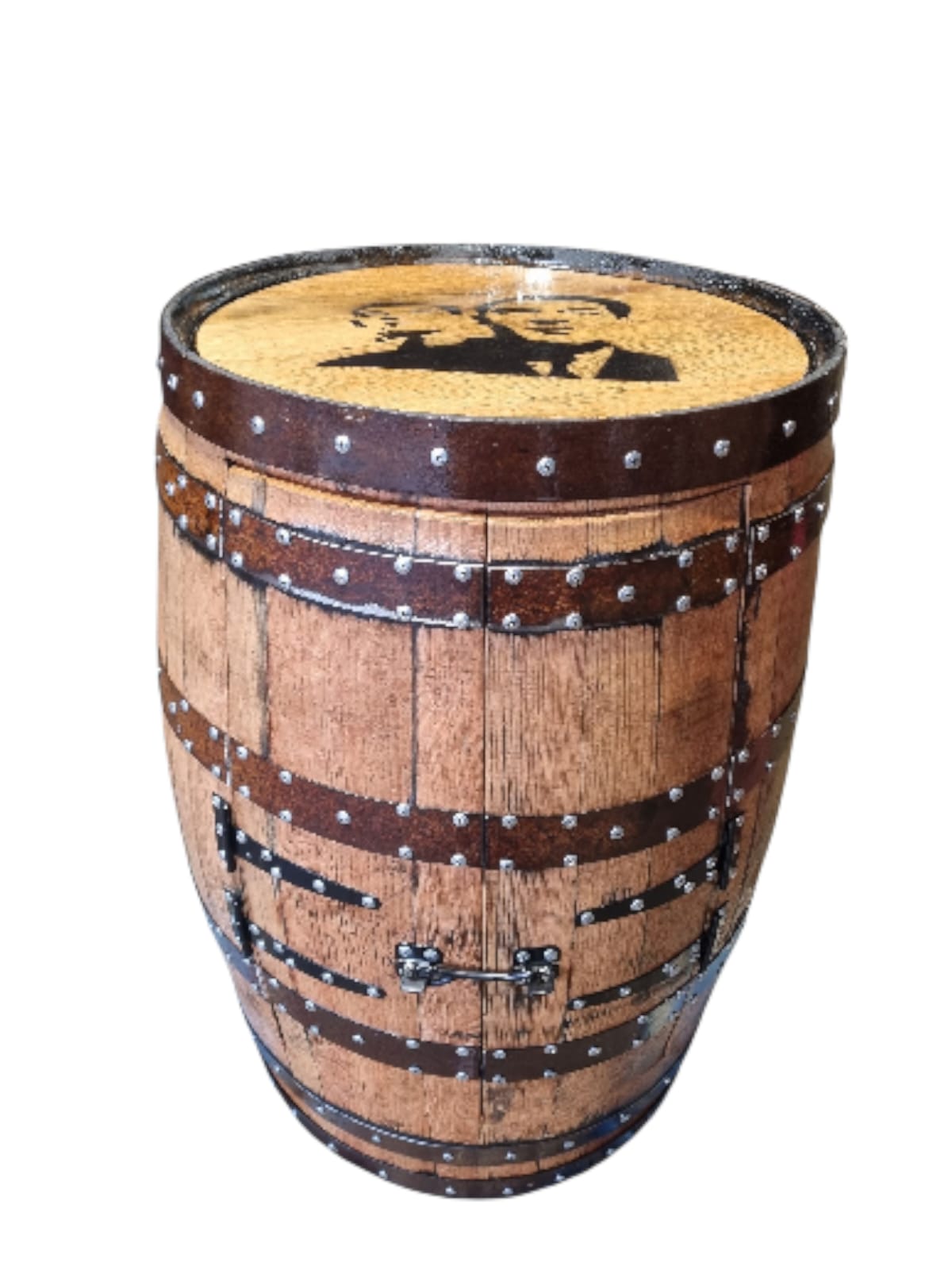 The recycled solid oak whisky barrel drinks cabinet is handmade from recycled Scottish whisky casks that have been sourced from the finest and oldest distilleries in Scotland. They have been completely refurbished and sanded back to give an aged oak look.
